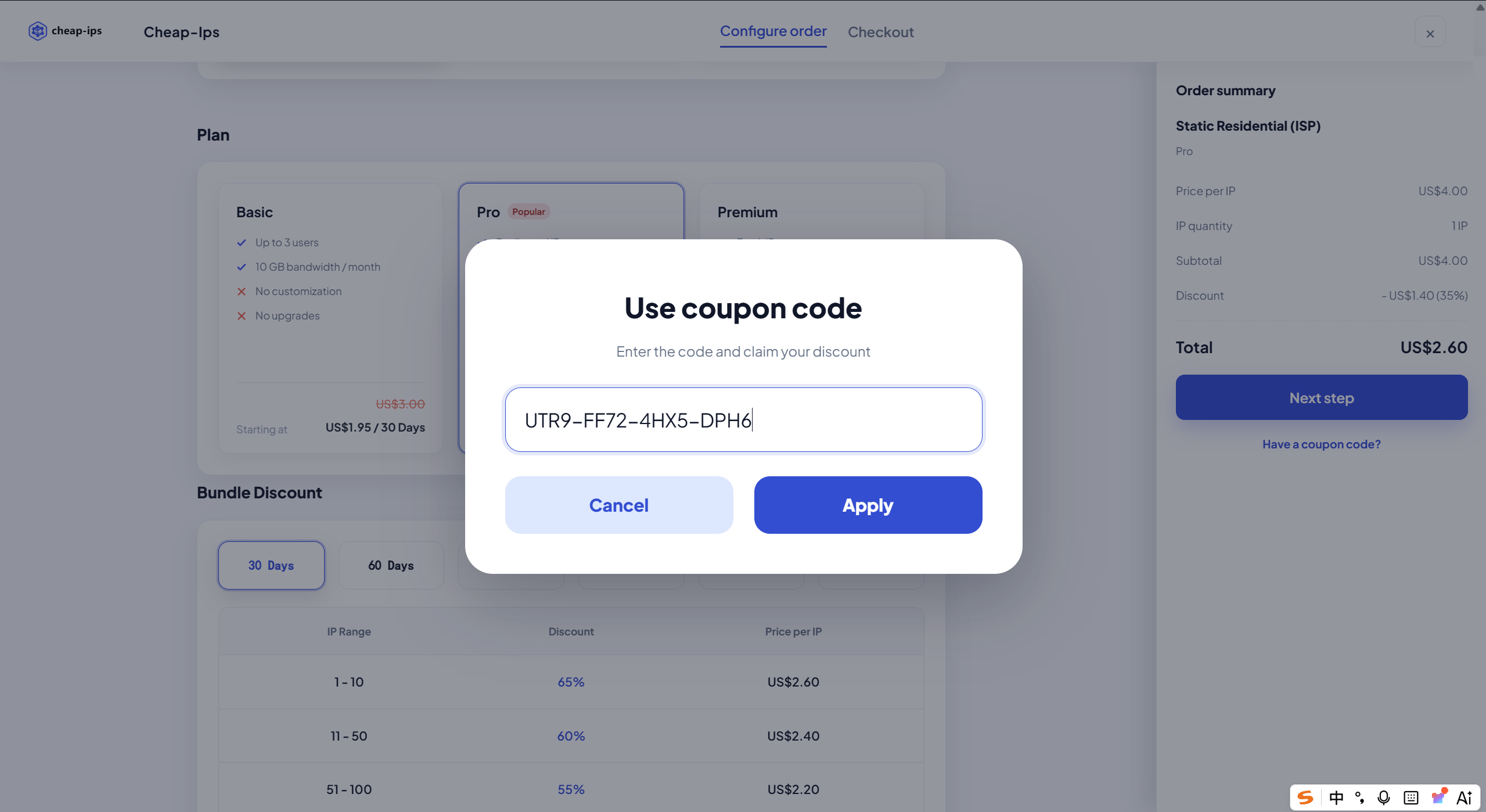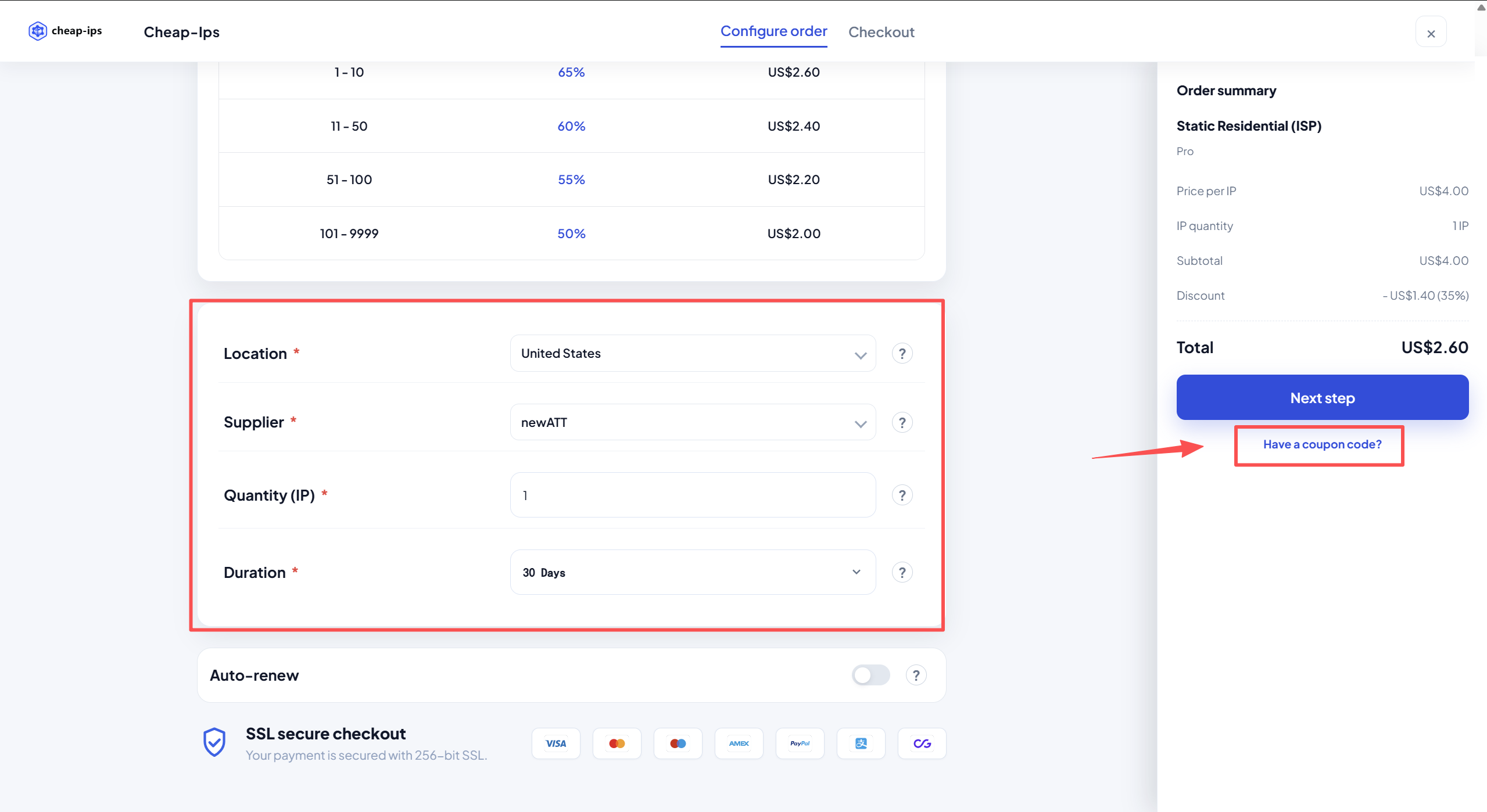 选择完成后,点击Have a coupon code? 输入刚刚获取到的兑换码。